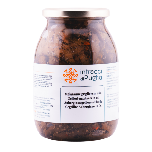 Le Melanzane Grigliate in Olio di Intrecci di Puglia portano in tavola il sapore intenso e genuino delle melanzane grigliate, esaltate da un condimento semplice e autentico. Conservate in una combinazione di olio di semi di girasole e olio extra vergine di oliva, sono insaporite con aceto di vino, prezzemolo, peperoncino e un pizzico di sale. Ideali come antipasto, contorno o per arricchire piatti di carne e insalate, regalano un tocco di tradizione e gusto mediterraneo.